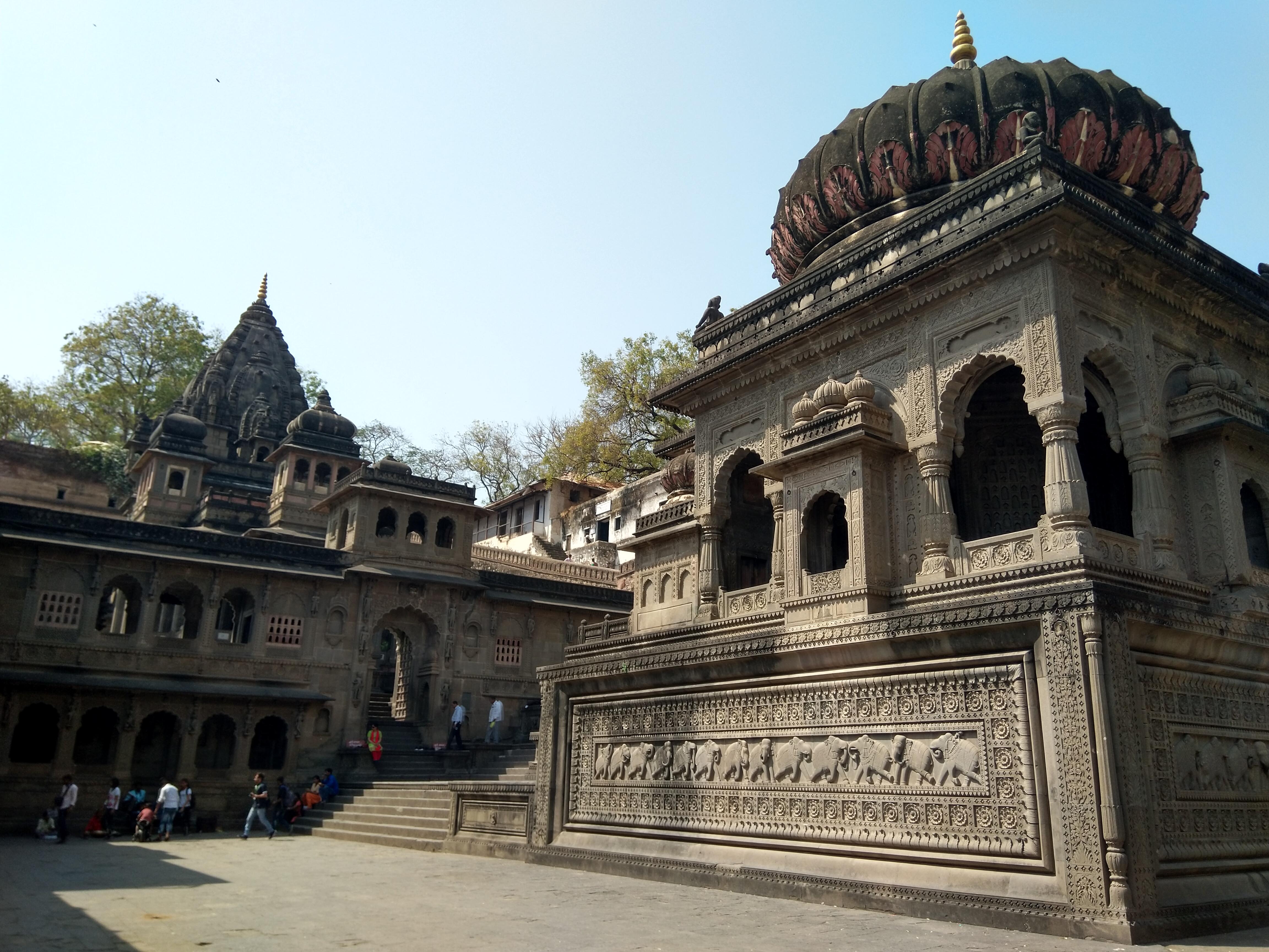 Your journey begins at the massive Ahilyabai Fort, which stands as a sentinel on a hill, overlooking the holy river on one side and the bustling modern town on the other. Within these weathered stone walls lies the Rajwada, a simple yet elegant palace that portrays the austere and devoted lifestyle of the Queen. Here, visitors can pay their respects at a life-size statue of Rani Ahilyabai seated upon her throne or marvel at the golden lingam housed within the palace’s Shiva temple. A short walk leads to the Ahilyeshwar Temple, an architectural marvel dedicated to Lord Rama. Built by the Queen’s daughter, Krishnabai, to honor her mother’s memory, the temple’s facade is intricately carved with images of Maratha soldiers and elephants, serving as a silent chronicle of a bygone military era.