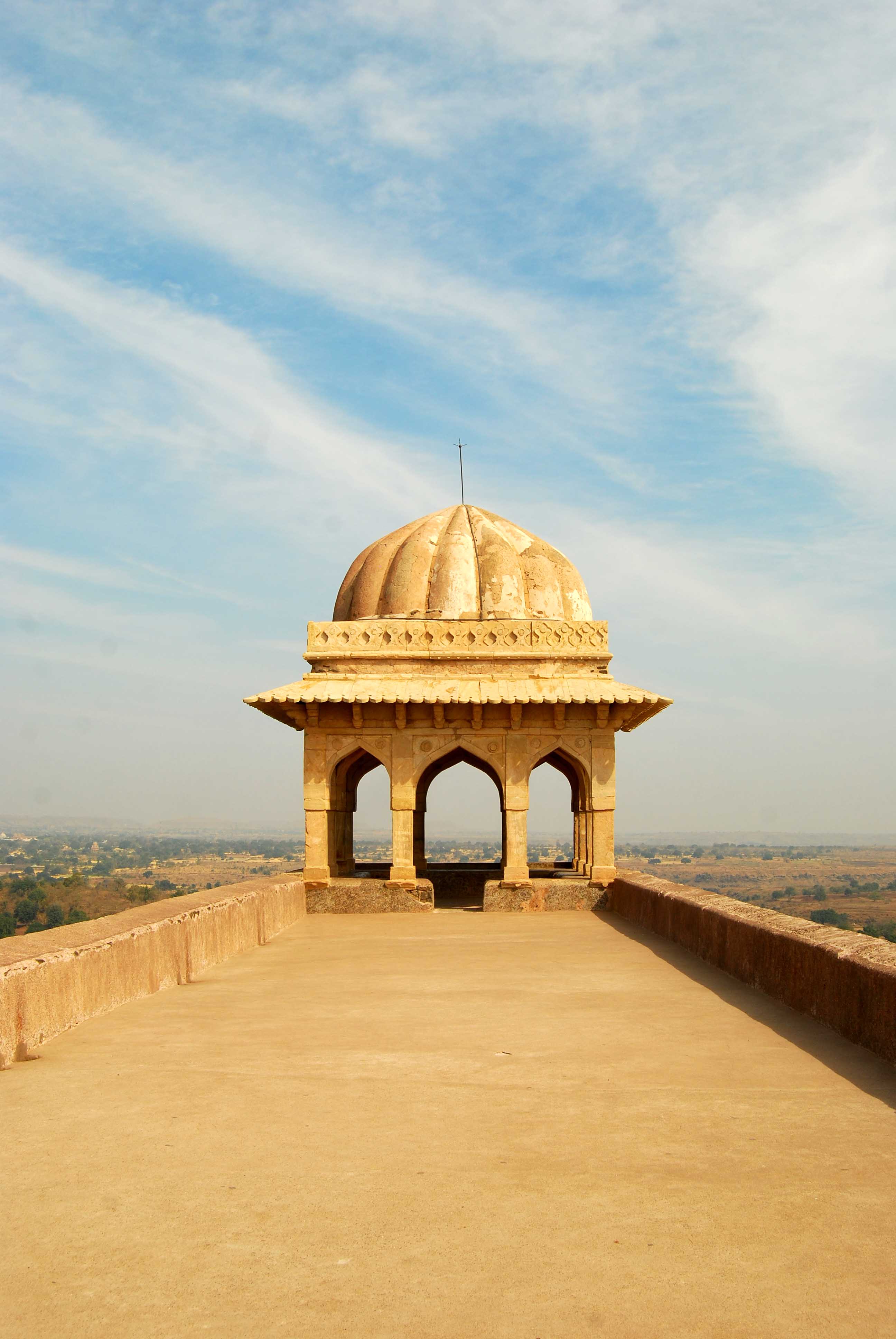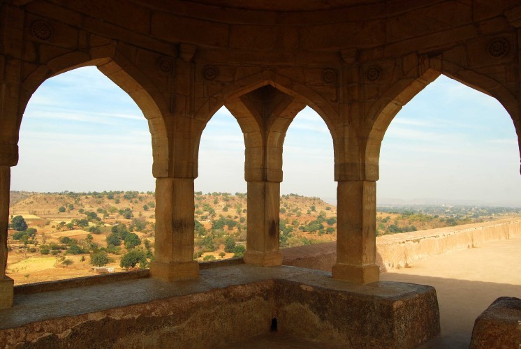 The soul of Mandu is inextricably woven into the legendary romance of Baz Bahadur and Rani Roopmati, a narrative of devotion that physically sculpted the city’s southern ridge. High atop this crest sits the Roopmati Pavilion; once a stark military outpost, it was softened into a graceful retreat so the Queen might forever gaze upon the sacred Narmada River and the distant palace of her beloved. Tucked just below, the Baz Bahadur Palace radiates 16th-century sophistication, its spacious courtyards and elevated terraces offering quiet, sweeping views of the verdant rolling countryside.